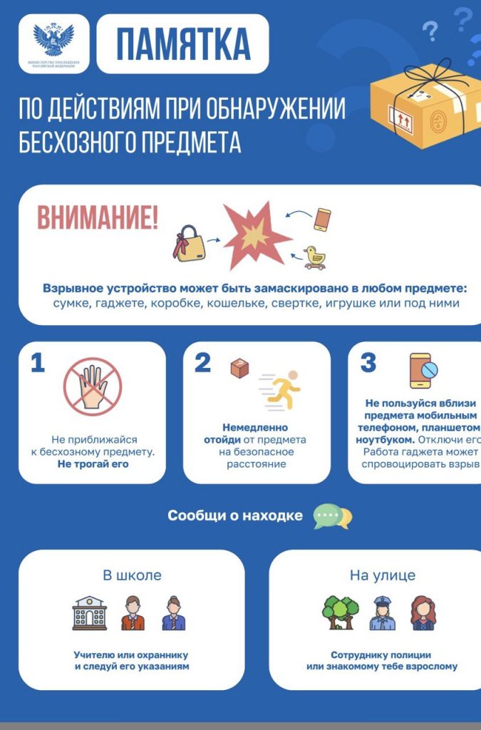 Следуя этим простым правилам, вы сможете действовать грамотно и безопасно в случае обнаружения бесхозного предмета.