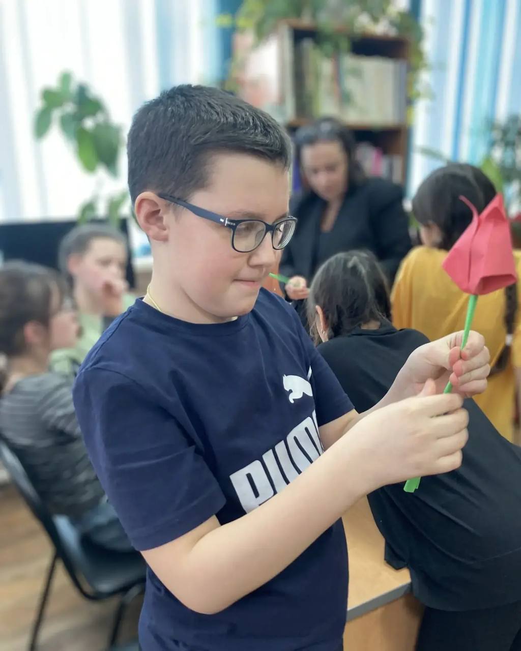 В рамках творческой части памятного дня для лицеистов был организован мастер-класс по изготовлению красных тюльпанов из бумаги. Ребята старательно создавали эти хрупкие цветы своими руками, вкладывая в каждую работу частичку благодарности ветеранам боевых действий.