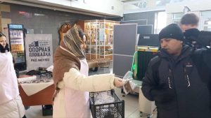 Определили две площадки: железнодорожный вокзал и центральная площадь с мемориалом воинам Великой Отечественной войны. На вокзал отправились участники «Движения первых», а на площади разместились ЮНАРМЕЙЦЫ. Активисты двух детско-юношеских организаций в этот день вручали жителям и гостям города символический кусочек хлеба и карточки с информацией о различных фактах того времени.