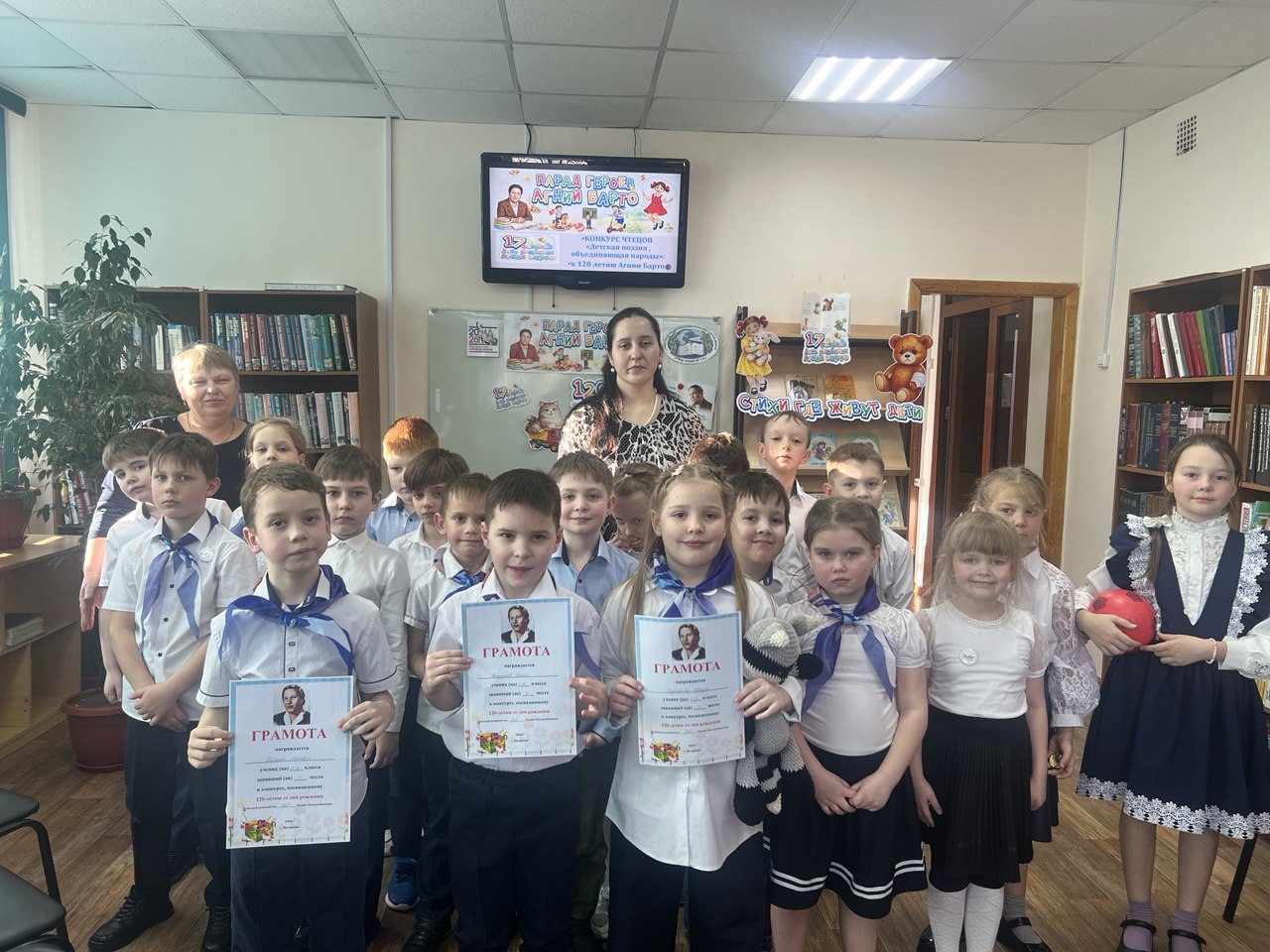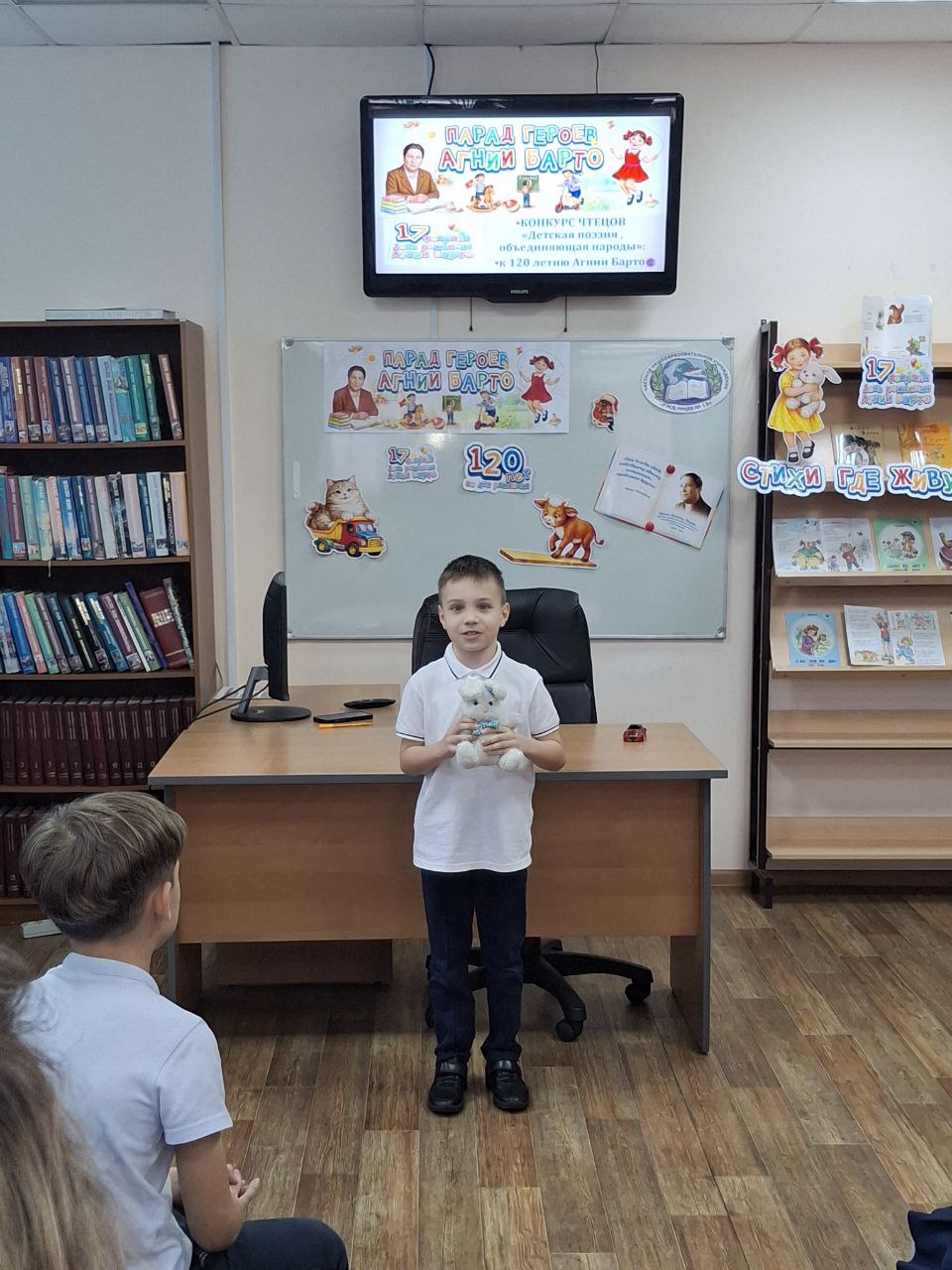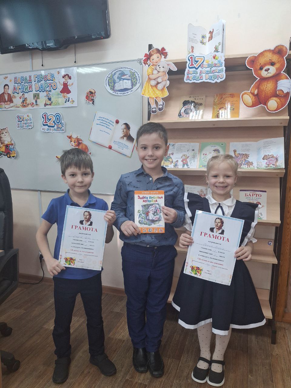 В библиотеке РЖД лицея №13 ученики первых классов приняли участие в своем первом большом творческом состязании — конкурсе чтецов, посвященном 120-летию со дня рождения любимой детской поэтессы Агнии Львовны Барто.Стихи Агнии Барто — это целый мир, в котором вырастает каждое новое поколение. Для наших первоклассников этот конкурс стал не просто уроком литературы, а настоящим испытанием на смелость и артистизм. Ведь для многих ребят это было первое серьезное публичное выступление.Особую атмосферу празднику придало присутствие родителей, которые пришли поддержать своих юных артистов. Звучали истории про мишку, которому оторвали лапу, про Таню и мяч, про грузовик и зайку и многих других героев. Первоклассники подготовились на славу: многие использовали в своих выступлениях игрушки, что превратило конкурс в маленькое театральное представление.Оценивало таланты строгое, но справедливое жюри. Эксперты признались, что выбрать победителей было крайне сложно — настолько искренними и старательными были все участники. По итогам конкурса места распределились следующим образом: