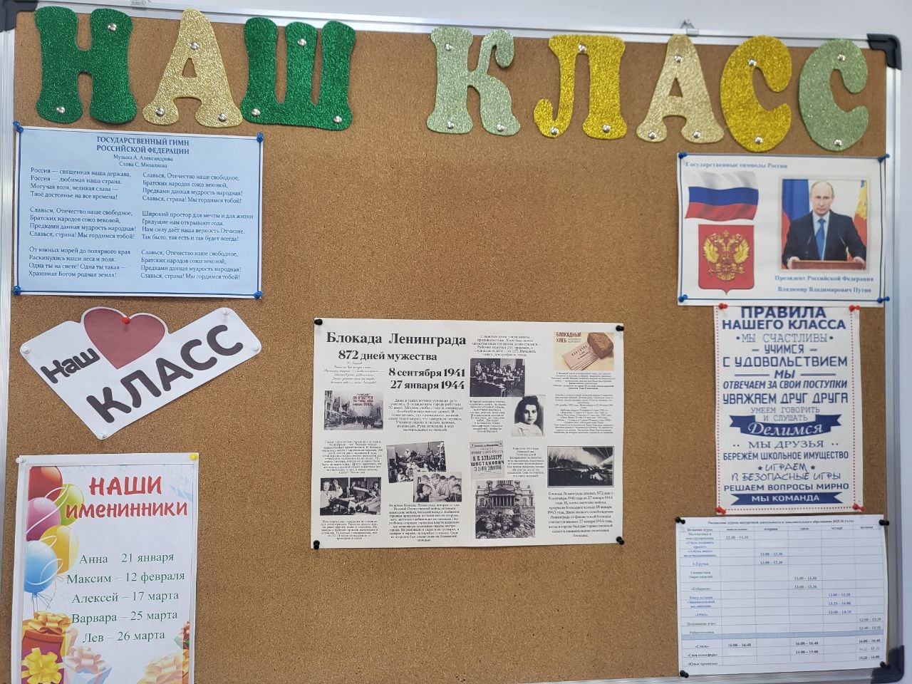 В 3-а прошёл цикл мероприятий, посвящённых снятию блокады Ленинграда. Учитель, Ирина Викторовна, воспитатель, Елена Юрьевна, и педагог дополнительного образования, Ольга Эдуардовна, провели классные часы и музейный урок, ребята изготовили блокадную ласточку и оформили тематические стенды. Познакомились с рассказом Г. Черкашина «Кукла» и посмотрели художественный фильм 1944 г. «Жила-была девочка».