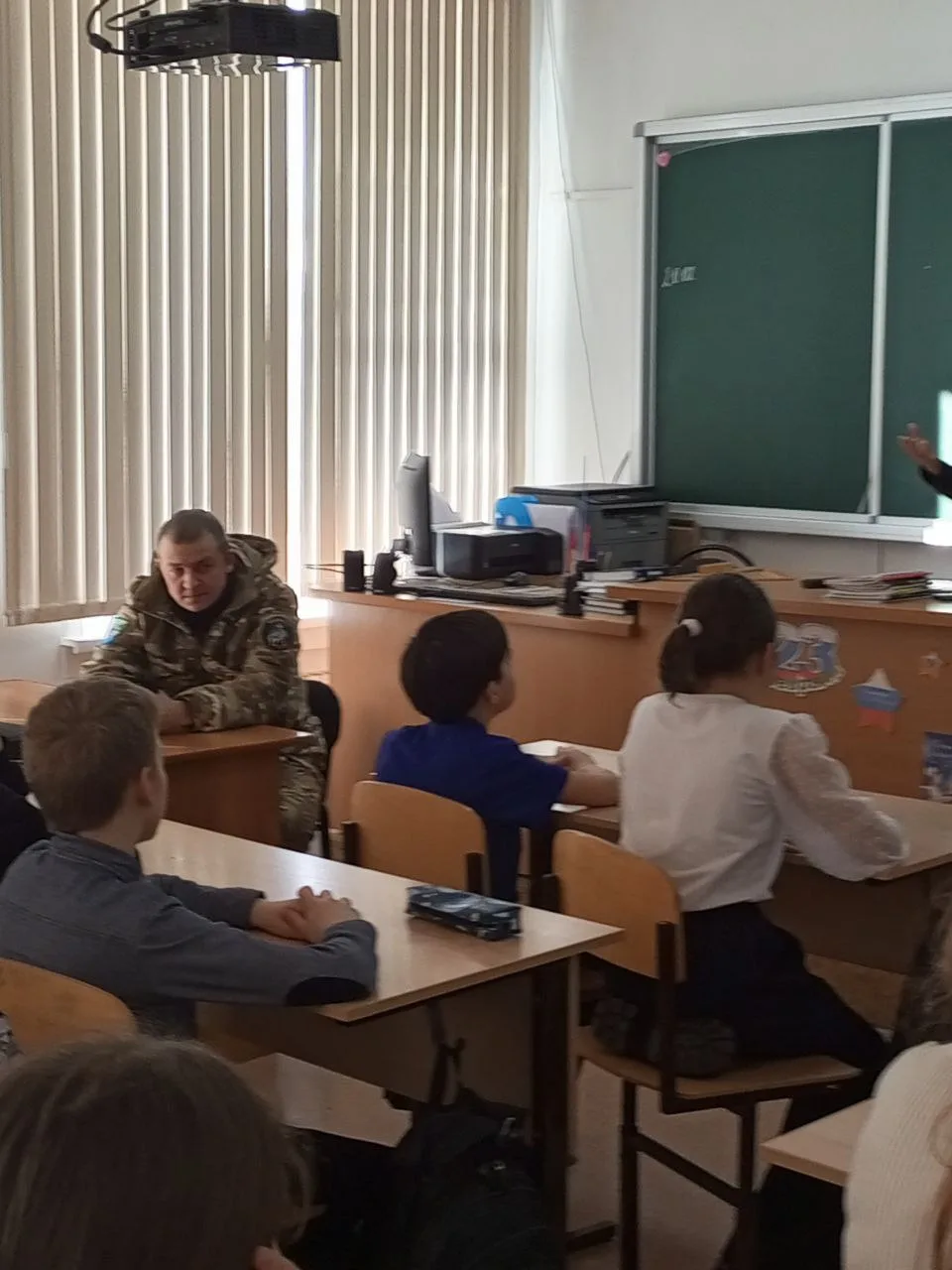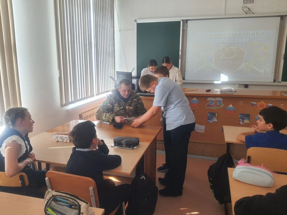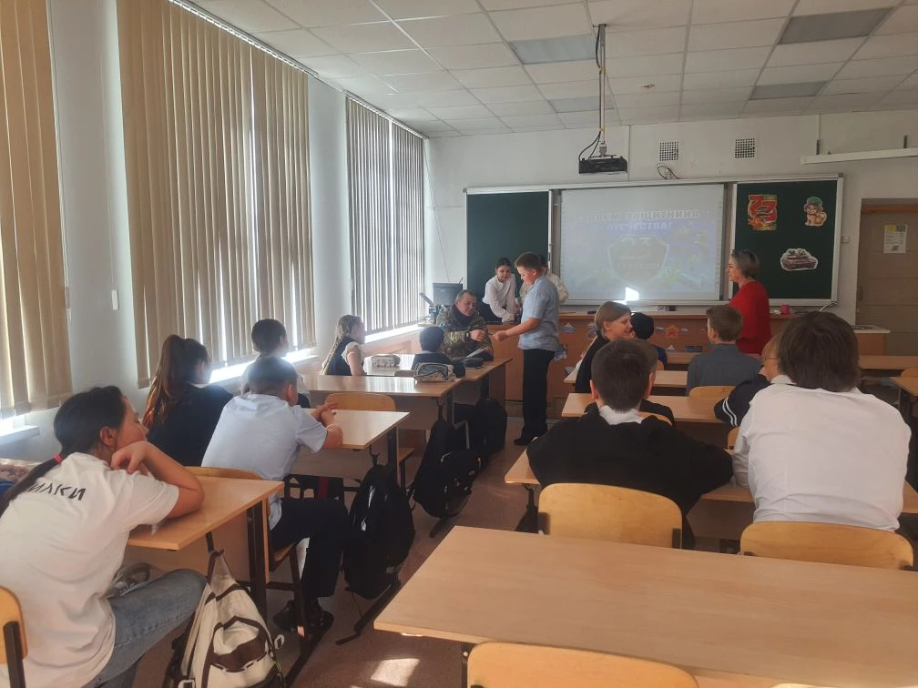 В преддверии Дня защитника Отечества ученики 5 «В» класса получили уникальную возможность пообщаться с героем нашего времени. В гости к ребятам пришел действующий участник Специальной военной операции Андрей Амирович Бабенко — отец одной из учениц класса. Эта встреча стала для пятиклассников особенной. Одно дело — читать о подвигах в учебниках, и совсем другое — видеть перед собой человека, который прямо сейчас защищает интересы нашей страны, проявляя мужество и стойкость. Тот факт, что гость является папой их одноклассницы, добавил встрече особую душевность и искренность.Беседа прошла в формате теплого диалога. Гость рассказал ребятам о буднях на передовой, о важности боевого братства и о том, как греют душу письма, приходящие из дома. Пятиклассники внимательно слушали и задавали вопросы: о воинской службе, о личных качествах, которыми должен обладать солдат, и о том, что помогает сохранять присутствие духа в непростых условиях.В знак признательности и поддержки ребята вручили бойцу памятные сувениры. Эти подарки были изготовлены участниками объединения «Лазерный станок», экологического волонтерского движения «Экопривычка» и обучающимися 5 «В» класса. В завершение встречи девочки поздравили мальчишек, а почетный гость пожелал ребятам расти сильными, ответственными и честными людьми, быть опорой для своих семей и ценить настоящую дружбу.Мы благодарим нашего гостя за визит и желаем ему и его товарищам здоровья, сил и скорейшего возвращения домой с победой!