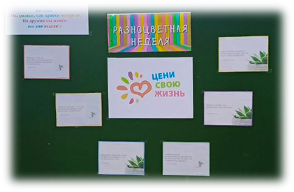 Недавно в нашем лицее прошла серия профилактических мероприятий под названием «Разноцветная неделя», направленная на формирование культуры здоровья и предотвращение самоповреждающего поведения среди учащихся 1-11 классов. Эта неделя стала важной частью образовательного процесса, объединяя педагогов, родителей и учеников вокруг ключевых вопросов сохранения физического и психологического благополучия наших детей.